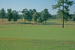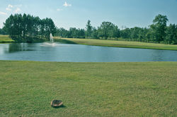 No. 1 handicap hole with creek on right running entire length of fairway. Par 4 with OB on right and water on left and right protecting green. Big number possible if not careful on this hole.